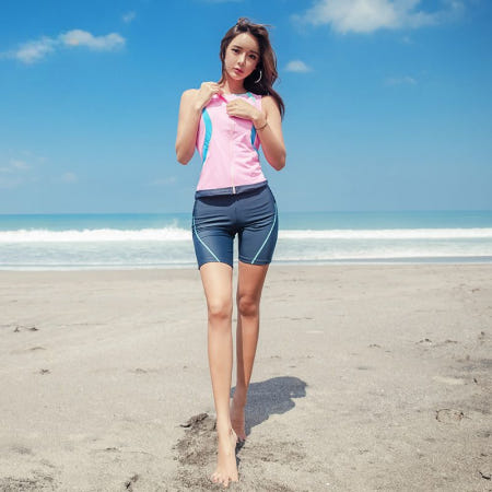 비치웨어 투피스 민소매탑+반바지 스포티 스파수영복