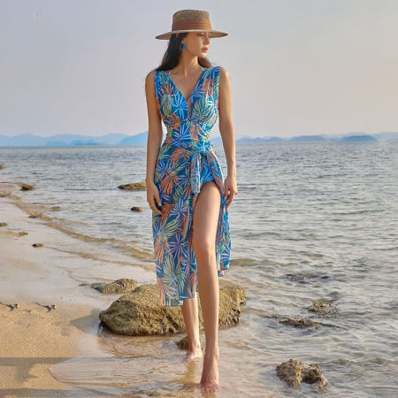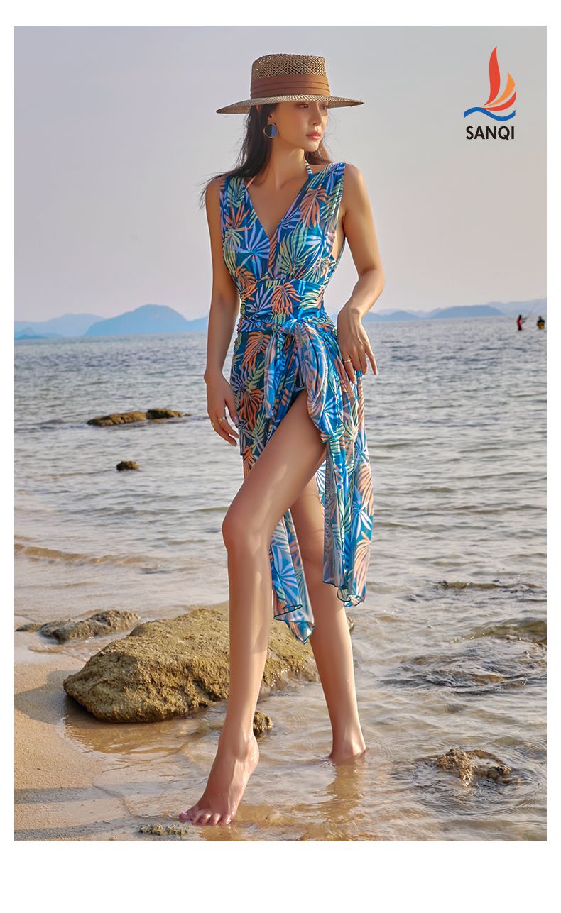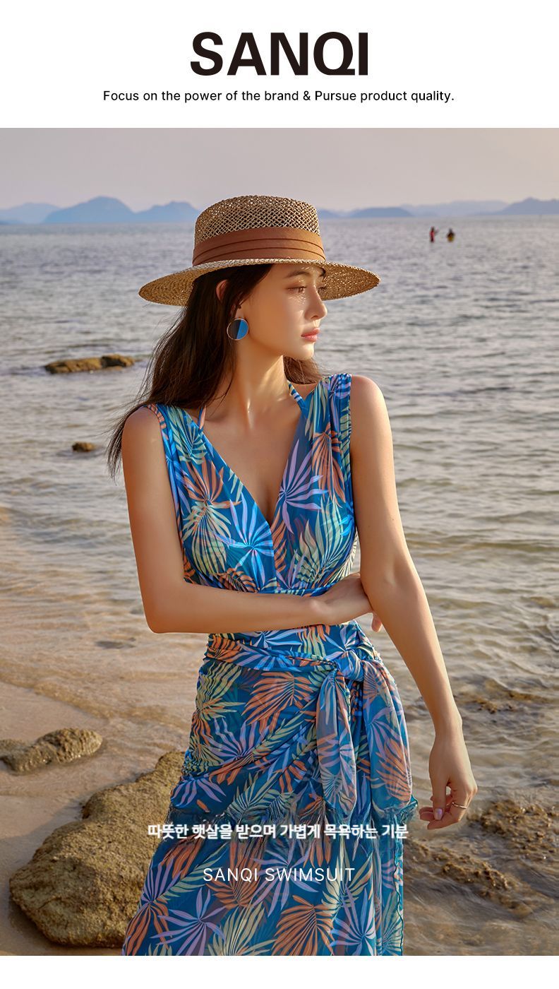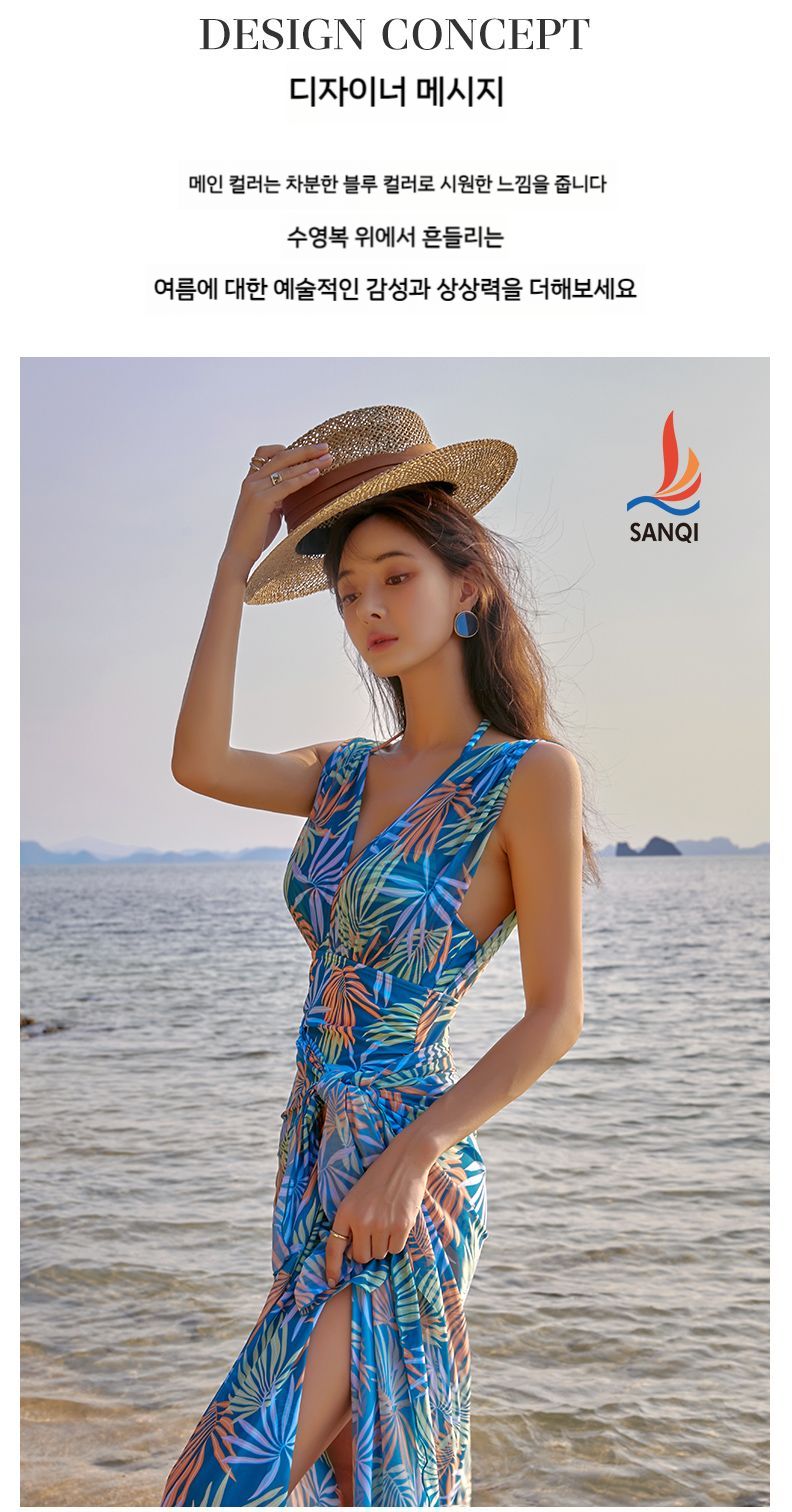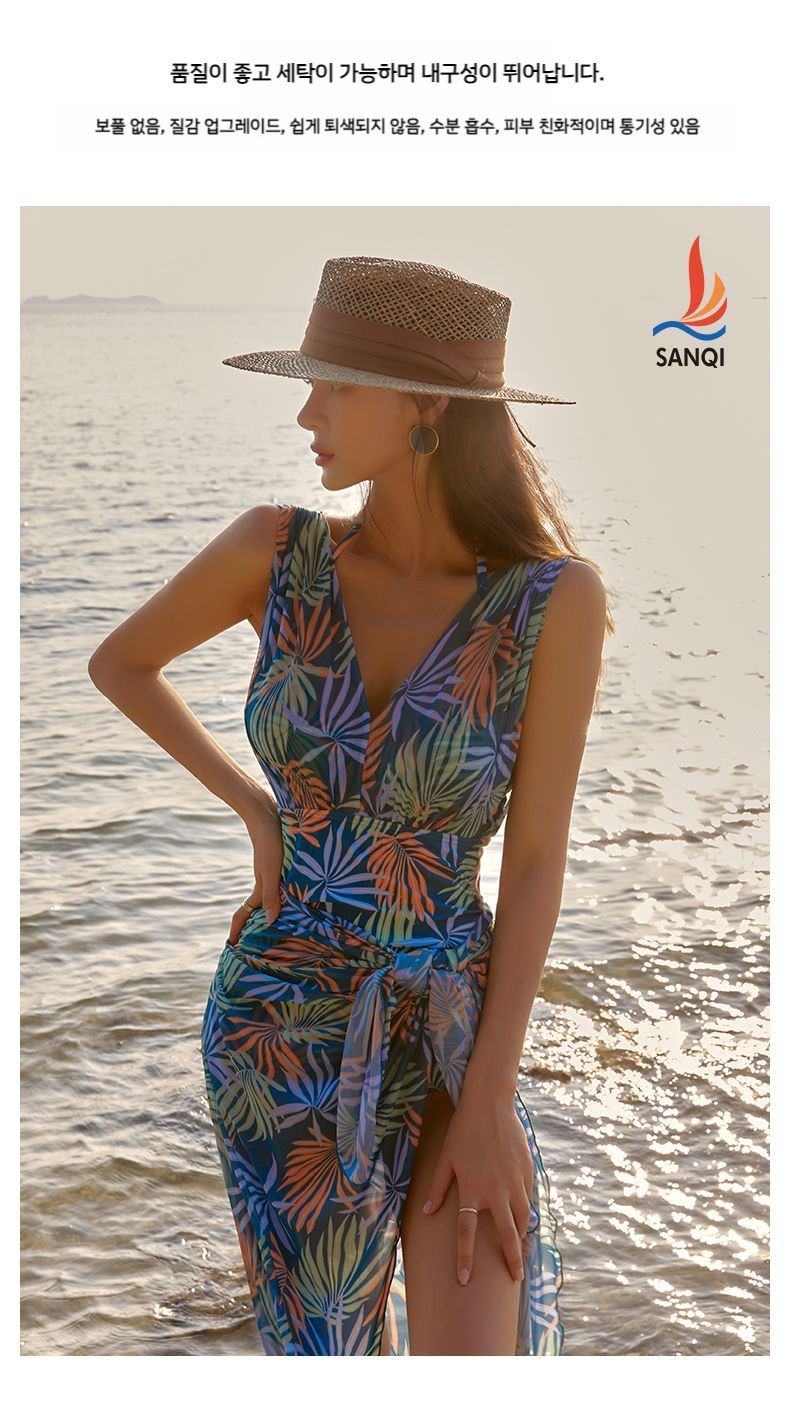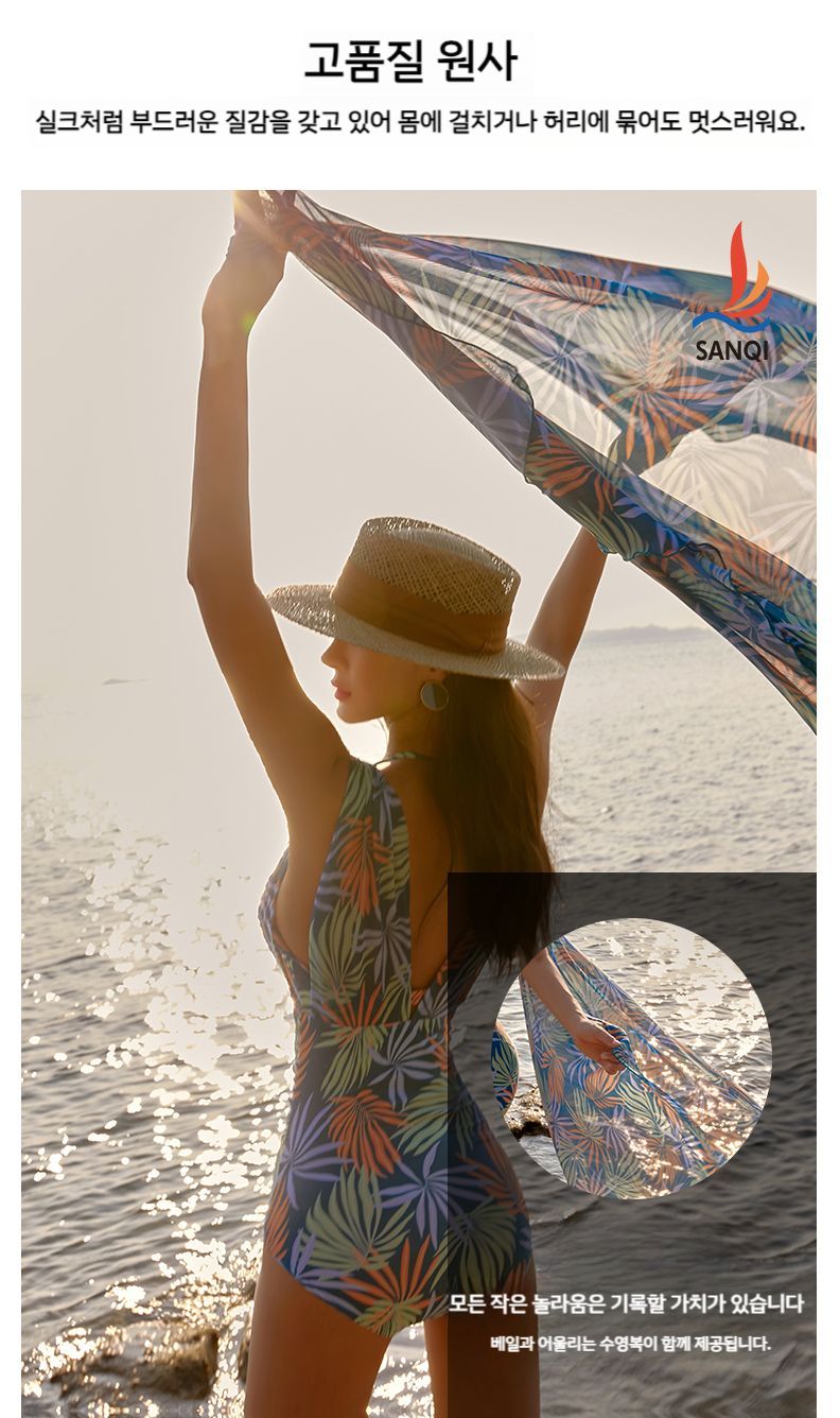 프린트 삼각 원피스수영복+멀티 커버업 2세트