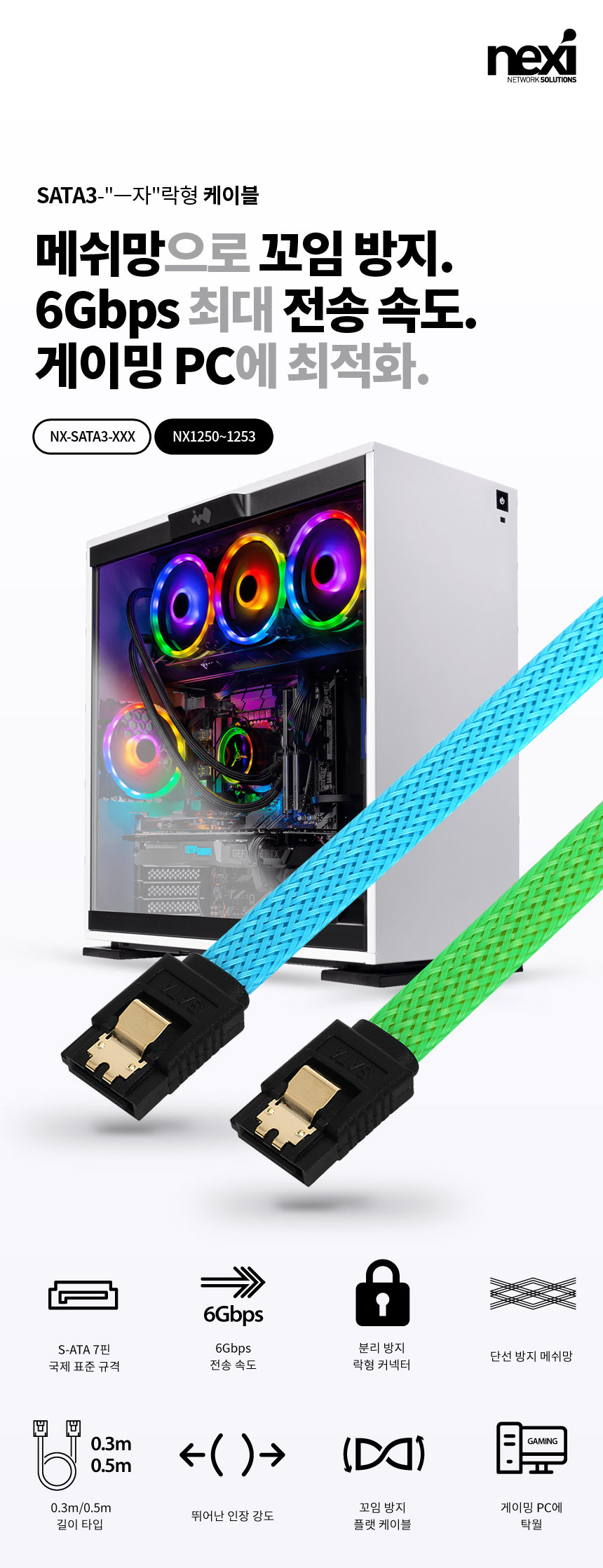 SATA케이블 SATA3 SSD HDD 하드 연결 사타 데이터 선 30cm