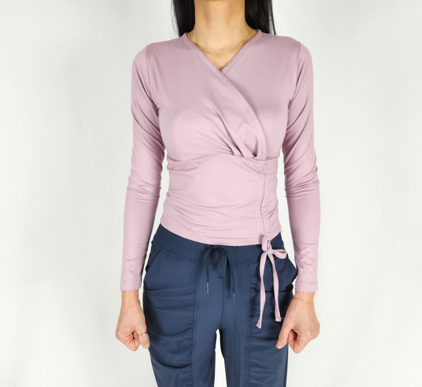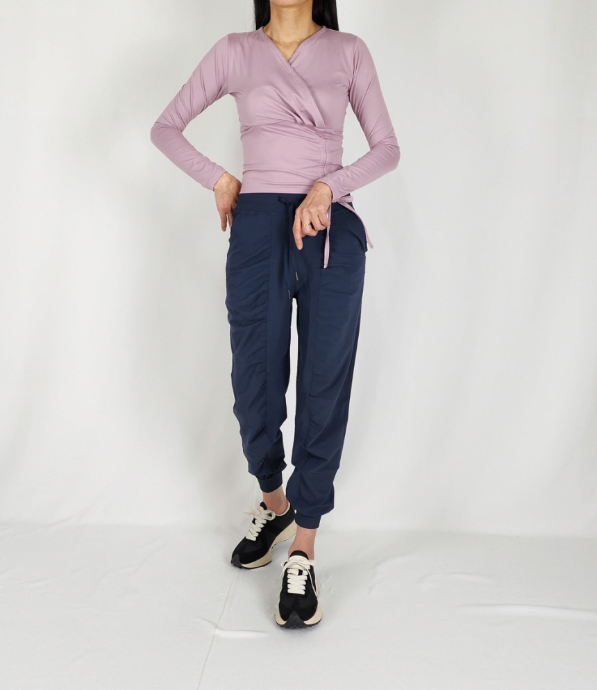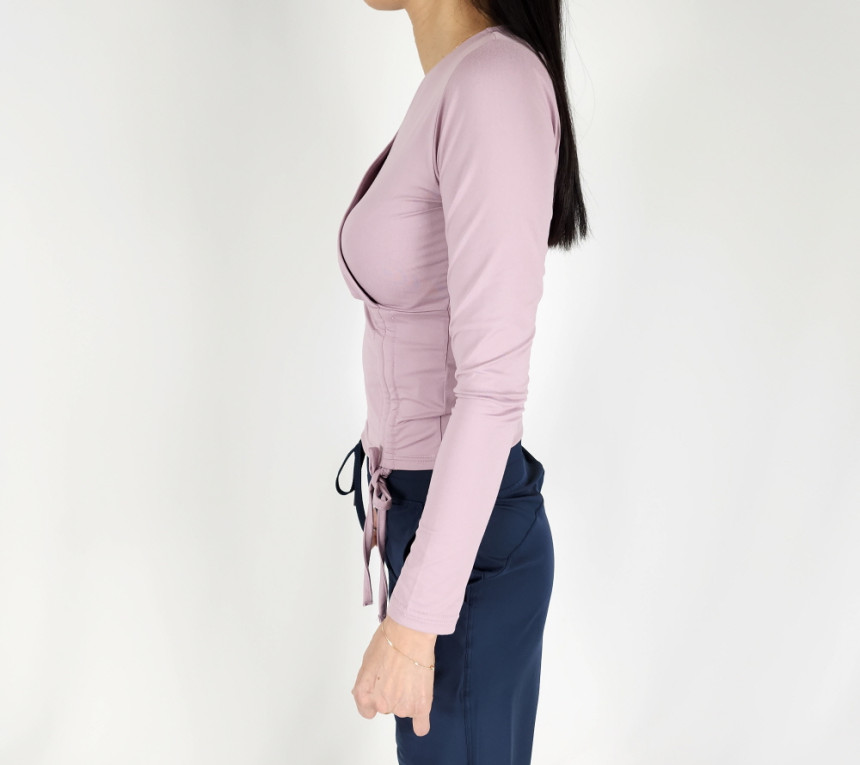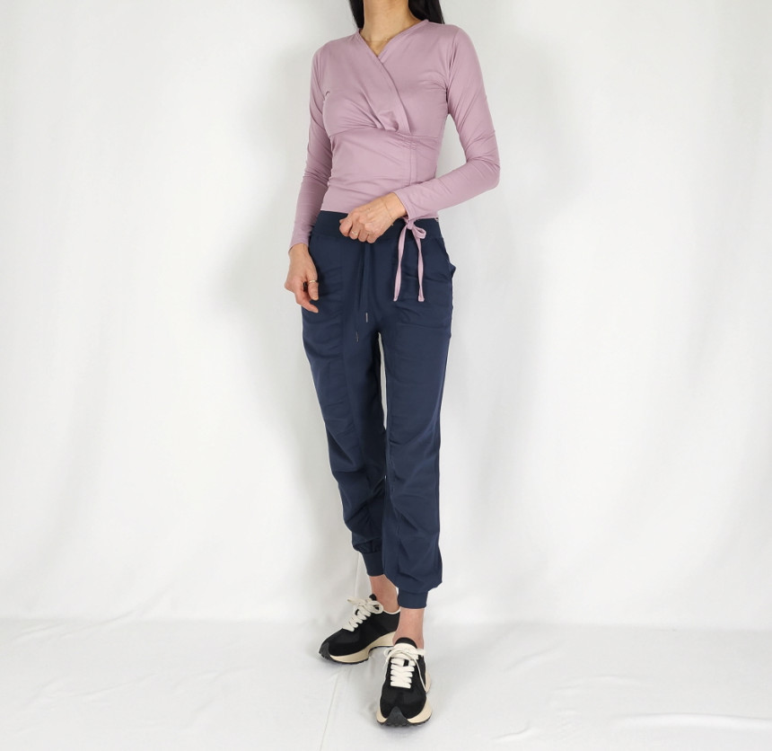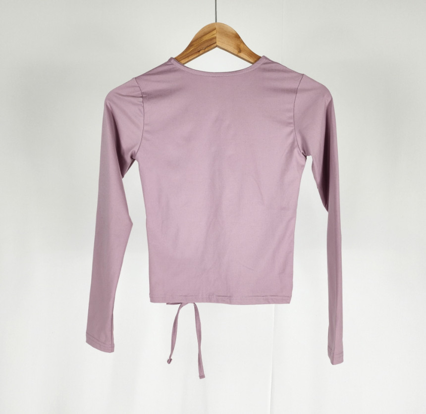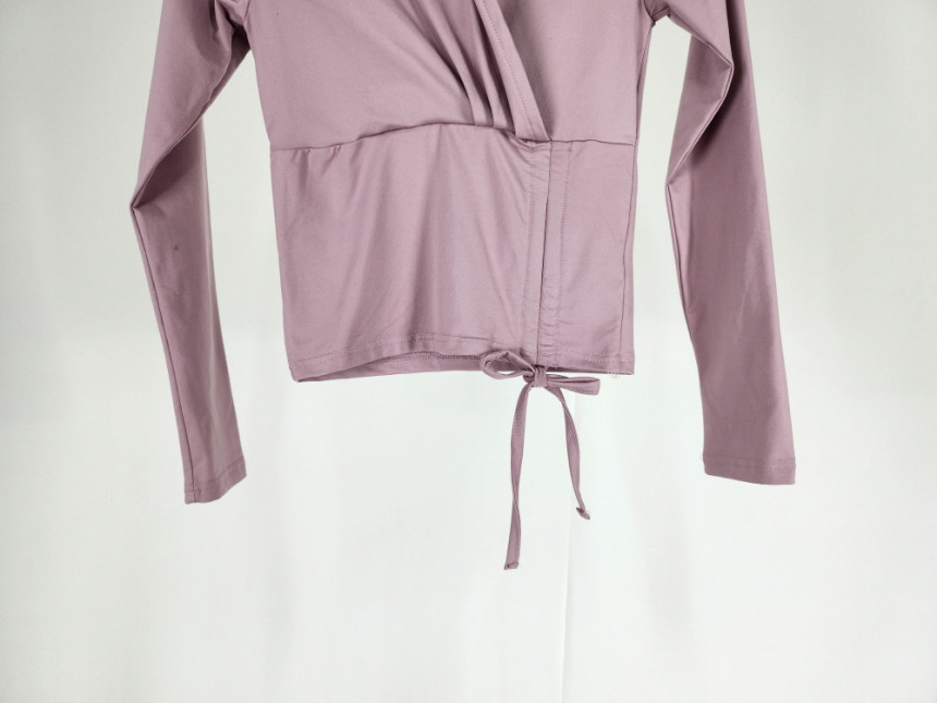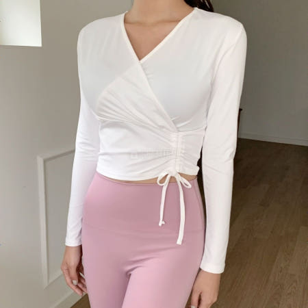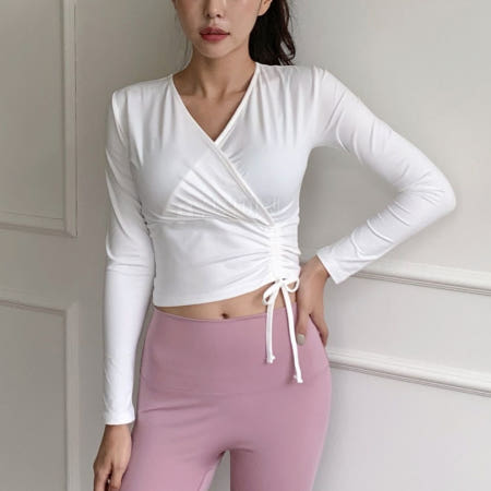 여자 휘트니스 홈트레이닝 헬스 요가복 상의 브이넥 랩 밑단 스트링 긴팔 티셔츠