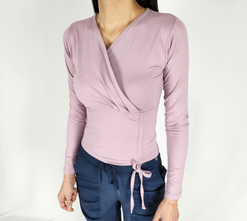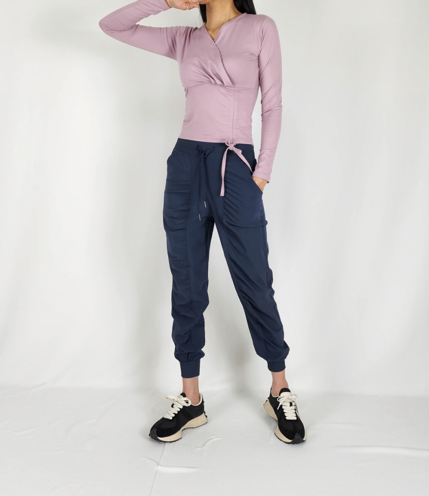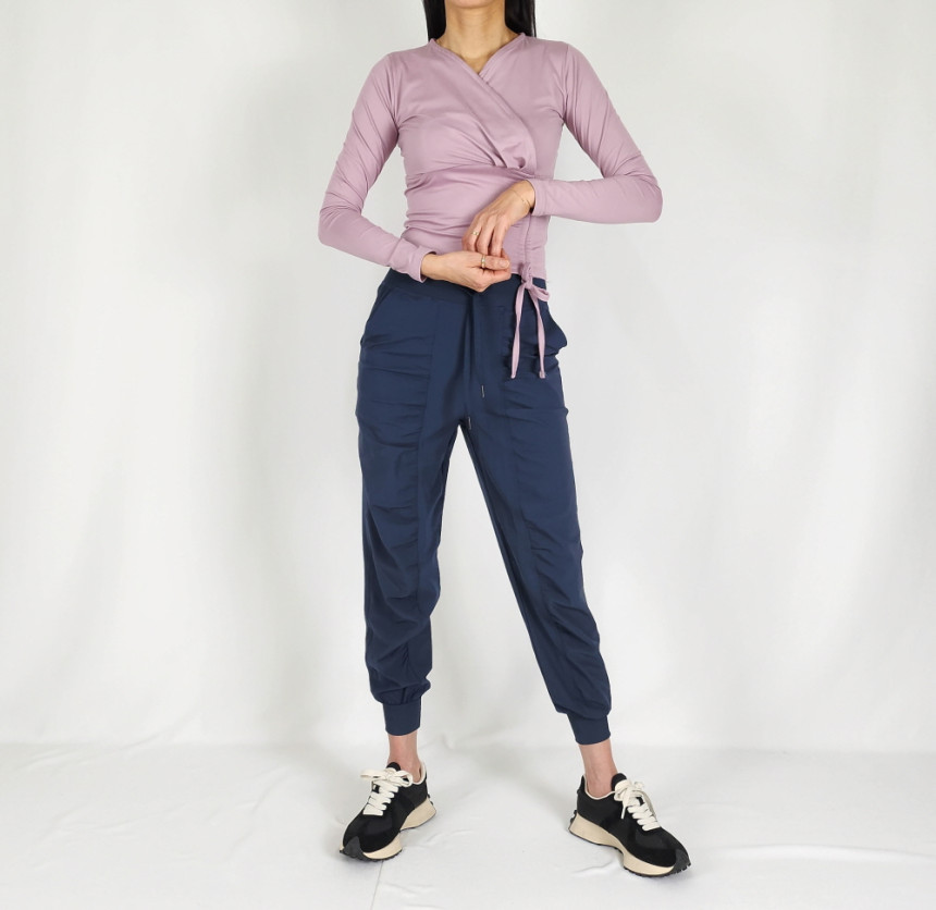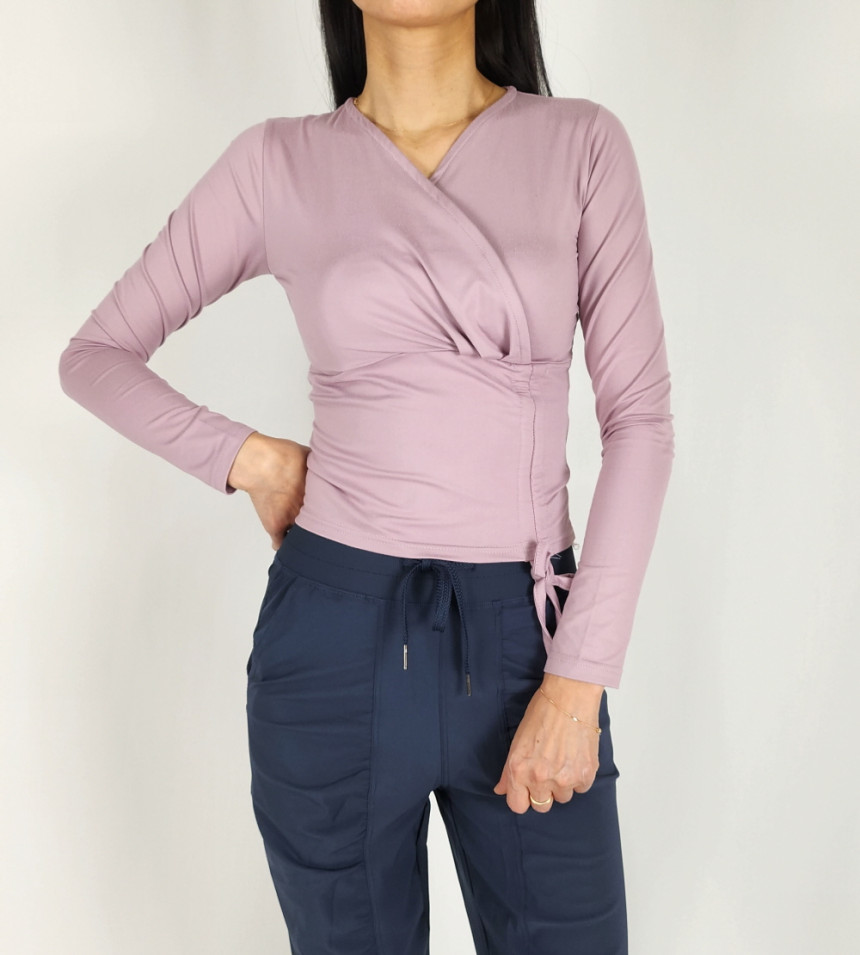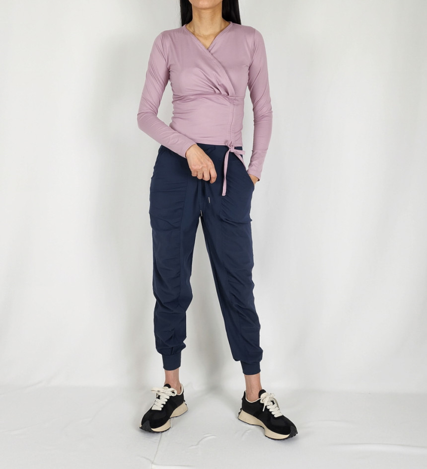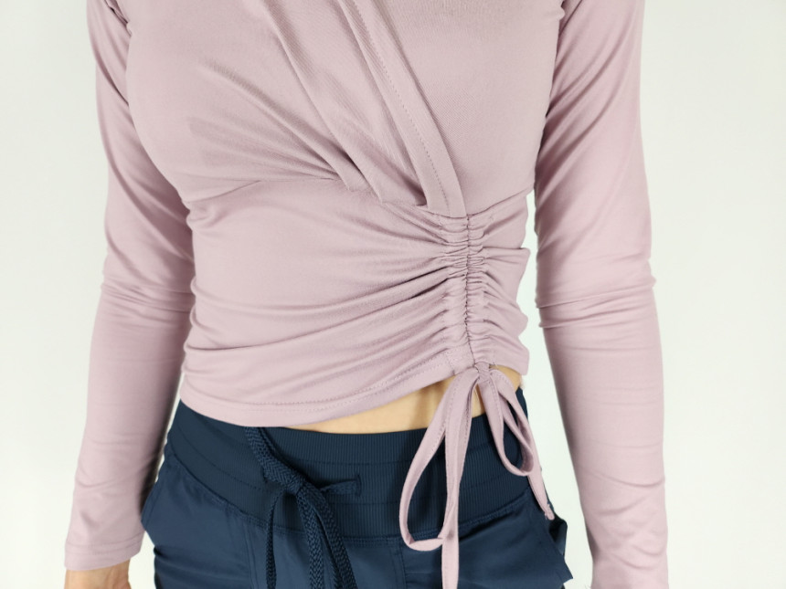 여자 휘트니스 홈트레이닝 헬스 요가복 상의 브이넥 랩 밑단 스트링 긴팔 티셔츠