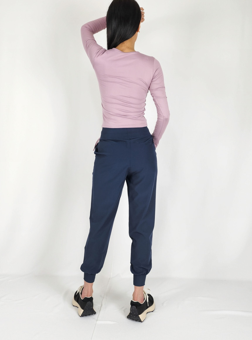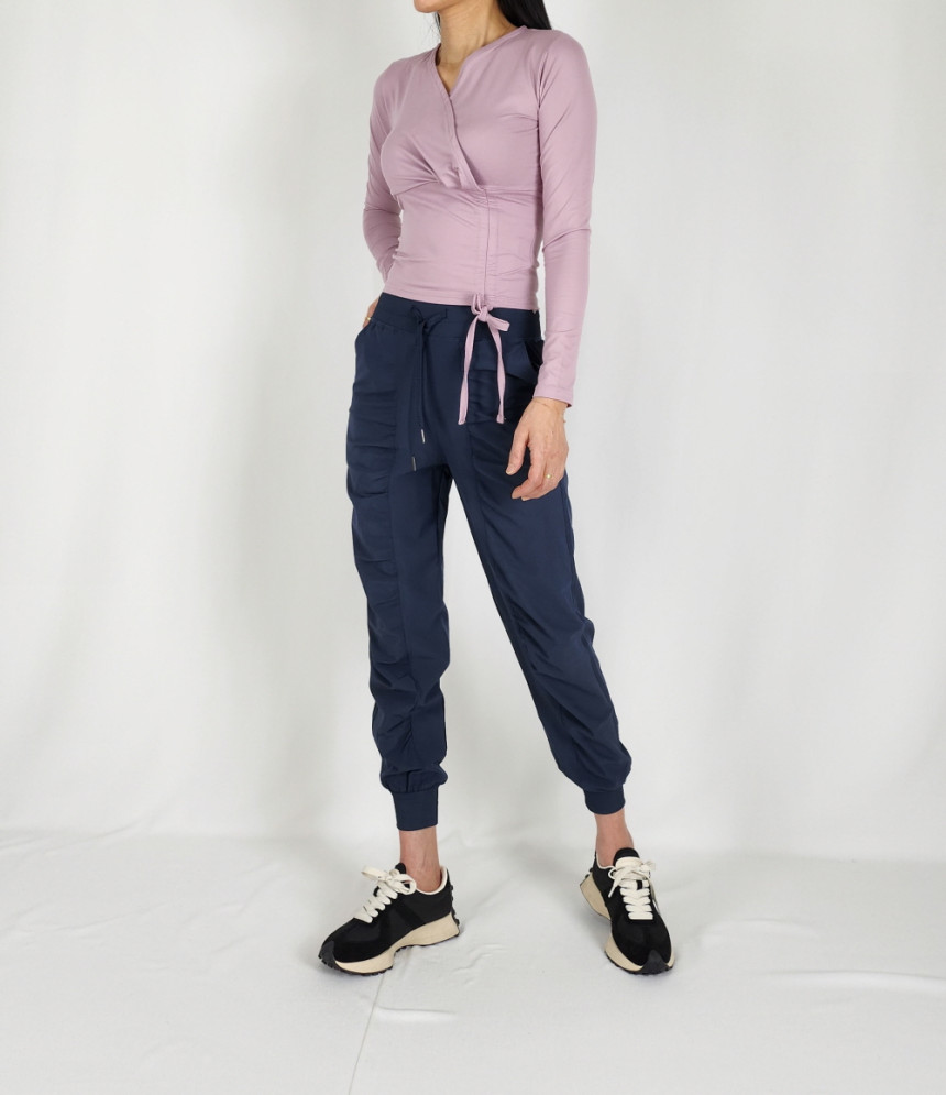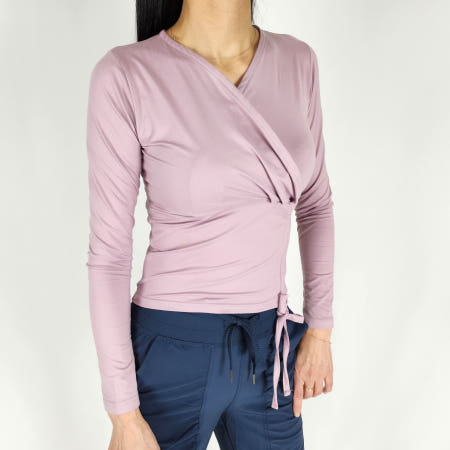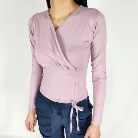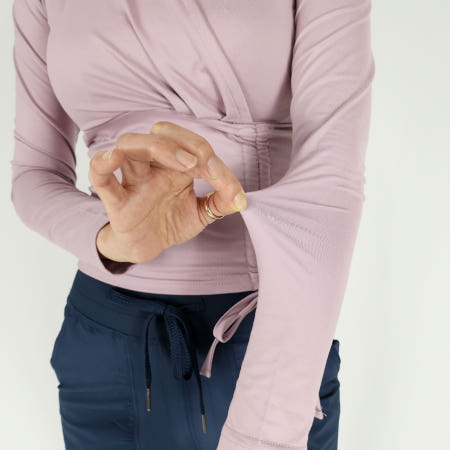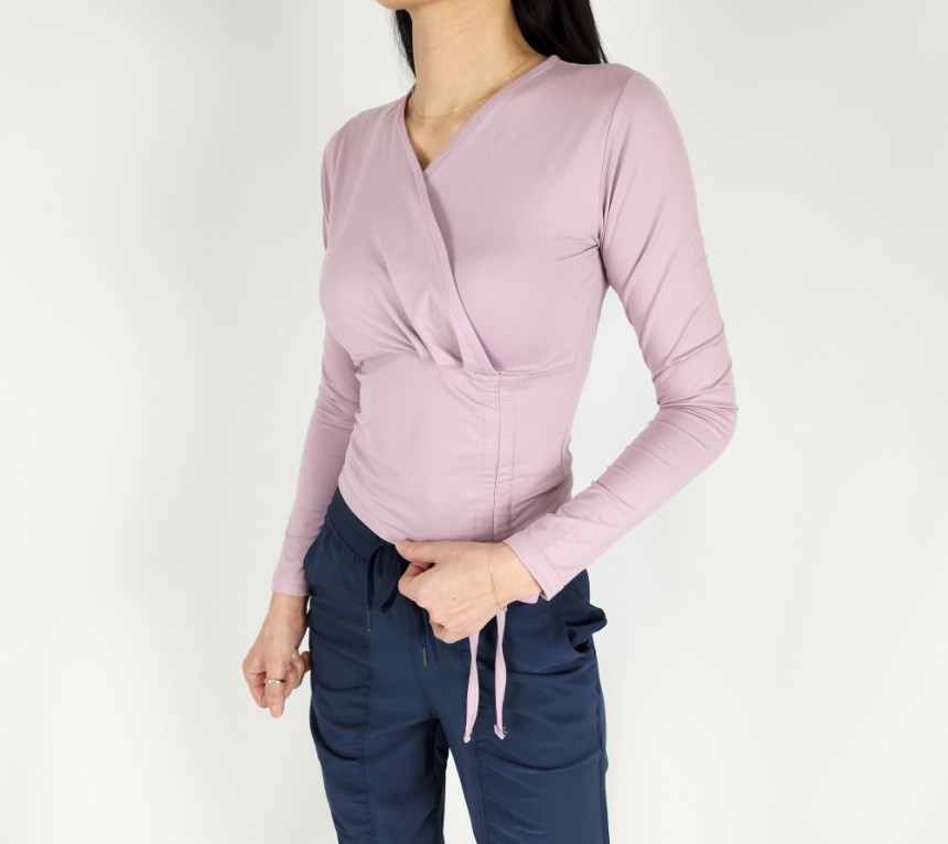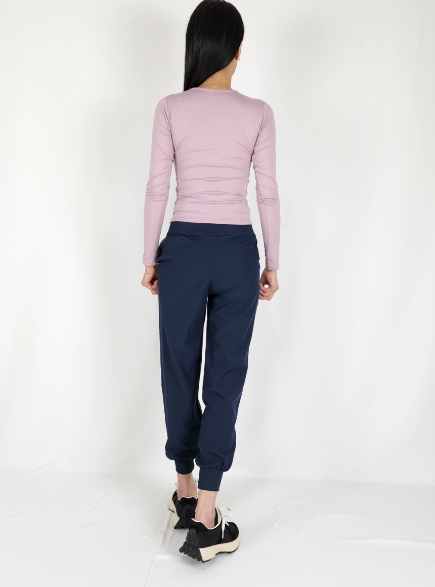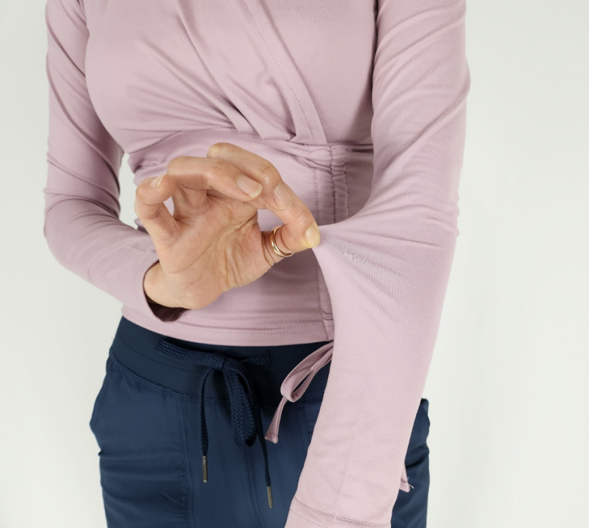 여자 휘트니스 홈트레이닝 헬스 요가복 상의 브이넥 랩 밑단 스트링 긴팔 티셔츠