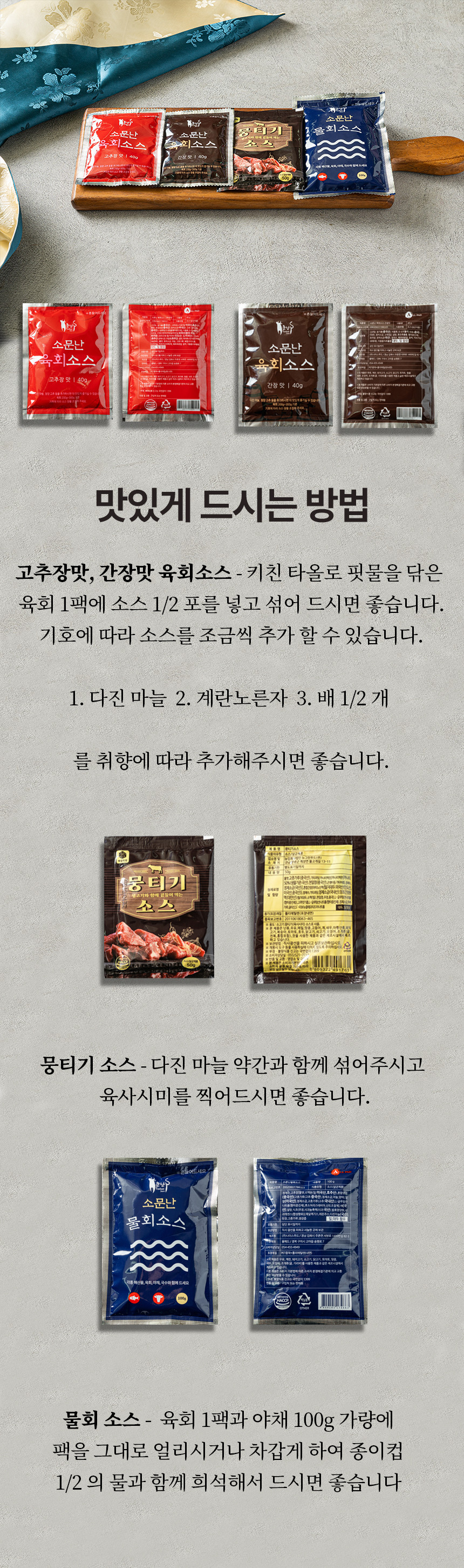 육회의 매력을 배가 시켜 줄 소스와 함께 동봉 발송됩니다 ! (추가선택 사항)
