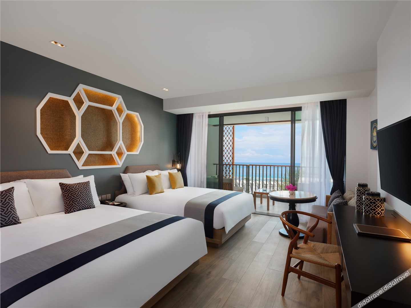 [Premier Family Room, Sea View, 1 King Bed and 1 Queen Bed, Balcony] /