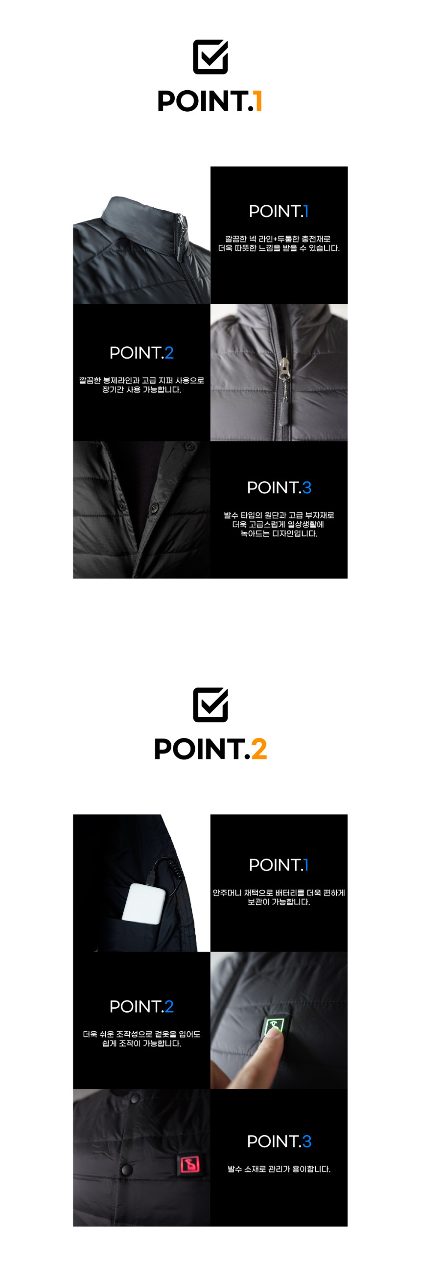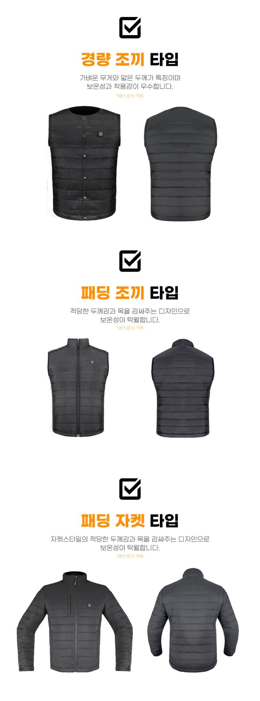 국산 열선 발열 조끼 패딩 USB 3단 온도조절 오토바이 배달대행 방한 골프 낚시